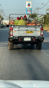 Wie sagt man so schön? Andere Länder, andere Sitten. In Deutschland undenkbar. Hier erschreckt man sich, weil auf der Autobahn, auf einer Pickup-Ladefläche plötzlich, ein Mensch von seinem Mittagsschlaf erwacht und sich aufsetzt. Drei oder auch vier Personen auf einem Roller sind nichts besonders. Ein kleines Baby in Mamas Armen auf einem Roller, umgeben von hunderten Fahrzeugen, Normalität.